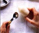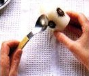 4.将勺子在酒精灯上加热,开始在蜡烛上贴标本。用热勺子在蜡烛侧面,使此处的蜡变软,形成的凹陷正好放上一朵花或一片叶子。