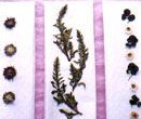 1.将厚无酸卫生纸裁成细长条铺在桌子上,将花草标本按照你的愿望排列在纸条上,注意标本色彩、姿态、质地的搭配。