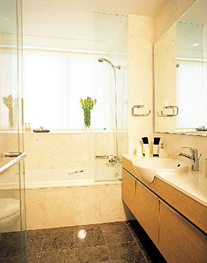 | 在讲求家居舒适的年代里,人们对“最隐秘的空间”浴室的需求也越来越高,许多人既要浴室实用,又要浴室时髦、美丽、舒适。 室内设计师佘坤丰说,目前许多人选购新居,考虑的条件往往包括浴室的设计与设备,由于目前许多都市人不再只是视洗澡为“任务”,而将之视为工作劳累一天后,身心能彻底松懈的一种享受,因此,许多人要求浴室要具备“酒店式”的舒适感。 在功能方面,有些浴室不但备有浴缸,还兼具 淋浴房 ,以便屋主能随着心情选择淋浴或沐浴。近年来spa风气盛行,也有人希望能在家里自己做spa,因此浴缸的设计也越来越讲究,有的还在浴室内装置电视机,尽可能达到舒适、享受的目的。 盥洗盆 形色材质多样 浴室的主要组成元素,包括浴缸、 淋浴房 及盥洗盆近年来都不断推陈出新。尤其是盥洗盆在材质、造型、色彩各方面都起了很大的变化。各种缤纷多样的盥洗盆,也为浴室增添了丰富色彩。 在过去,浴室盥洗盆在材料上多数是陶瓷制,但近年来,盥洗盆的材料从玻璃、金属、合成材料都被广加利用。其次,在外观造型上,也有许多“个性盥洗盆”,外观变化多端,从方的、长的、圆的都有。造型上有的像个大碗,有的像一顶帽子。过去大多数盥洗盆,一般嵌入台面下,现在的盥洗盆有些单独摆放,有些为独立式台式盥洗盆。 在色彩方面,过去以白色或是米色为主色,现在盥洗盆为配合浴室的多种风貌,色彩也益加丰富多变。 仿石人造材料 无缝无孔 在 浴室用具 的用料方面,近年来也有很大的突破,在过去,浴室盥洗盆的梳妆台面大多取材 大理石 面板,但近年来,仿石人造材料渐渐盛行,颠覆了过去的用料方式,如目前颇为盛行的“可丽耐”(Corian)即是一种由天然矿物、甲基丙烯酸甲酯(即假石物料)和颜料所组成的高科技产品。 本地Design Studio总裁林麟波说,目前本地发展商有很多将仿石人造材料应用在浴室梳妆台面,以“可丽耐”来说,这是美国杜邦公司于上世纪发明的一种人造材料,又称“无缝石”或“人造石”,是从大自然素材中拮取灵感,由石油提炼出来,甲基丙烯酸甲酯后加入矿石、色素等混合铸造而成。 古雅时髦 在人们的传统观念中,浴室多选用白色或乳白色等较为浅而淡的色调,但这款浴室设计由黑白两色建构而成,呈现出既古典又时髦的时尚感。此款设计的另一个特点是,浴缸向下嵌入,这使到人们躺在浴缸泡浴时,还可以一边松懈身心,一边享用茶水点心,或是看电视、听音乐。此外,浴室外还设有花栏,为洗浴空间增添几许绿意。 极限透明 看到这款浴室设计,你会感到瞠目结舌吗?据说,这款设计是为“爱侣”们精心设计的,主要特点是,躺在主卧室的床上可以完全一览浴室风光,而浴室外还可种种花卉植物,营造出一片花色或绿意。 仿石材料 仿石人造材料近年颇为盛行,应用在浴室梳妆台面,可以塑造成各种不同的形状如弯型、圆边,面积也可大、可小,在色彩上也相当丰富,由于这类材料由里到外实心一体,没有接缝,无缝无孔,所以不藏污纳垢,清洗及维修相当方便。