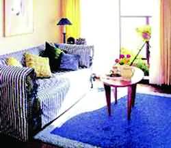 据陈友民介绍,蓝色具有扩散和后退性,能够造成比较宽广的视野,较为适合小户型,而淡黄、橙色等暖色调则比较温馨。虽然在传统设计上,室内色彩的对比不能过于强烈,但是如果有明亮、充足的阳光穿透进来,色彩上的设计就可以大胆一些。