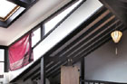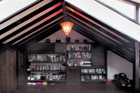 最喜欢的是阁楼。从楼梯上伸头看时,已喜欢上了。屋顶和墙,大块的白色。大梁,人字形檩条和支柱,是一水的深色木料。像一幅线描的房屋结构图。家具随和地,都依着空间的形状或主 线条 的走势,或转角,或延长,轻拢慢捻。山墙上,顺着人字形,做了张书架,在收拢处自然收拢,书架的上部用一个同质的百页门把空调包在里面,以免太过突兀。架上是满满一架书。阁楼边缘较 矮的地方,依着有角度的空间做了两个侧面为三角形的大柜子。四四方方的柜门,没什么 线条 ,很厚实的深色,只看重实木的肌理和质感,里面是细细地规划过的使用空间。