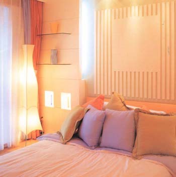 色彩:统一化 颜色搭配要看了令人觉得舒服,所谓令人舒服的顏色是见仁见智的,但一般我们都很讲究一致,色彩应以统一、和谐、淡雅为宜,比如床单、 窗帘 、枕套皆使用同一色系,尽量不要用对比色,避免给人太强烈鮮明的感觉而不易入眠。 对局部的原色搭配应慎重,稳重的色调较受欢迎,如绿色系活泼而富有朝气,粉红系欢快而柔美,蓝色系清凉浪漫,灰调或茶色系灵透雅致,黄色系热情中充满温馨气氛。 材质:多元化 床垫、寢具的质地应该力求舒适。地板最好能铺上地毯,既吸音,脚走起来也会舒服些。在有木地板的情况下,再局部铺上地毯更为舒适和实用,也丰富了地面材料的质感和色彩。用壁布覆盖墙壁、窗户用镶嵌双层玻璃或者多层化处理,都可以淡化室外的喧囂,创造出一個宁静的睡眠空间。 照明:柔和化 卧室的灯光照明以温馨和暖的黄色为基调。卧室中的普通照明需注意的是灯光要柔和、温馨、有变化,避免采用室内中央的惟一大灯,光线勿太强或过白,因为这种灯光常使卧室内显得呆板没有生气。如果选用天花板 吊灯 时,则必须选用有暖色光度的灯具,并配以适当的灯罩,否则悬挂笨重的灯具在天花板上,光线投射不佳,室内气氛大打折扣。床头上方可嵌筒灯或 壁灯 ,也可在装饰柜中嵌筒灯,使室内更具浪漫舒适的温情。 功能:个性化 不同的居住者对于卧室的使用功能有着不同的设计要求。主卧布置的原则是如何最大限度地提高舒适和提高主卧的私密性,所以主卧的布置和材质要突出的特点是清爽、隔音、软、柔。 客卧和保姆房应该简洁、大方,房内具备完善的生活条件,即有床、衣柜及小型陈列台,但都应小型化、造型简单、色彩清爽。 |