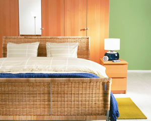 淡绿色的墙壁被柔和的灯光衬托的愈加神秘,一排原木质地的储衣柜简单而幽雅,尤其是搭配上别致的藤制双人床,就好象夏天的清风已经溢满整个房间。再来一块土黄色脚垫,色彩的和谐将扩大你的视线,让你的房间更加明亮。 多准备一些彩色的被褥吧。如果你钟情抢眼,不要忘了无论是玫红色还是海蓝色,条纹图案或是印花装饰,都能给清凉的房间带来跳跃的期待。 如果你是天生的审美家,那么在原木橱柜的前面摆放同质地同色系的床头柜吧,别忘了一盏晶莹的白色床灯,它的光线会让整个房间更加清新。一个深色的双人床更能突出木制家具的别致,又为房间增添了对比的醒目,如果在床上铺一条粉色的褥毯,一床素色小格子的被子,那么房间会顿时有了呼吸,必将带给你喜悦和灵感。 最后,还要在卧室的墙上挂上各式的画框,会增添更多的艺术气氛和享受。你还可以随意更换画布,一切都由你选择! |