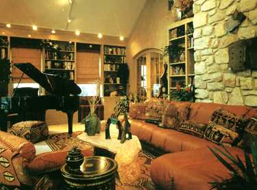 天然材质的壁饰和茶几与钢琴共享一室,把浪漫情调寄寓自然,别是一番风情。