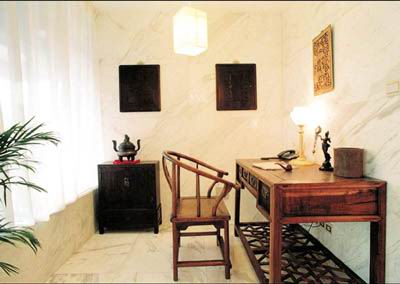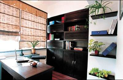 书房设计总是流露着主人独特的文化韵味。虽然书房有了电脑、打印机、传真机、视频电话等现代设施,但是,带有中国传统风格的元素仍然是书房设计常用的。在电脑与对联、打印机与青花笔筒的碰撞中,产生出别致的设计效果。 电脑与棋盘对话 设计者在书架外面安装了一扇玻璃门,所以在外面看不见书。平常玻璃门关上,要查找资料时才打开。这样一来,无论何时整个书房都整齐干净,不会乱七八糟。 对于主人来说,电脑是必不可少的工具,而围棋是他的最爱,所以在书房的当眼处,电脑桌旁摆放着软绵绵的布垫与矮木几,木几上的围棋盘,残局没完,胜负未分,仿佛在与电脑对话:主人对谁青睐些? 设计心得:若家中藏书多,可以为书柜设计一道拉门或者一道布帘作为装饰,既美观,又可以遮挡零乱的书本。 细节体现独具匠心 几乎每一个设计师都强调家居设计细节的处理。因为细节可以体现出不同的设计风格。初看这一设计方案并无特别之处,整体以沉稳、大方为主。但细细品尝,却从几个细节的处理看到设计者的心思。首先是 窗帘 的选择,浅褐色的 窗帘 与深棕色的书桌、书柜显得和谐一致,而且减轻了深色带来的厚重感。更重要的是,设计者精心选择了一款印有甲骨文字图案的 窗帘 布。古老的文字为书房带来了浓郁的文化气息。另一个值得学习的地方是,书房内的装饰品以大小不一的绿色盆栽为主,令房间生机勃勃。 设计心得:细节可以体现你的独具匠心。几盆植物是最好的装饰品,如果没有空间放大的植物,则可以在书桌上、书架上插点鲜花或者养些小盆栽。 红木流淌书卷味 红木书桌也许是最能体现传统文化味道的书房家具。看看这个设计:墙壁用 大理石 铺平,光滑而明亮的质感给人一种舒适的感觉。书房里面的家具很少,一张红木书桌上摆放着惟一的现代用品电话机。墙上挂几张挂画,靠墙角的小木箱用来放书籍。在这个可以说简单的书房内,没有电脑、没有太多的现代化设备,你可以感受到这个静谧的环境中散发着的书香味。