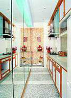 | 户型再小,厨房也不可少。小户型里的小厨房虽没有足够的空间供人“挥霍”,但是准备、料理、储藏仍需面面俱到,缺一不可。所以如何在小空间里打造出好用好看的厨房,让空间看起来不拥挤,让橱柜够个性,整体感觉够时髦,在方寸之地,充分借助各种厨房设备,以达到别有洞天、物我和谐的效果,真的需要动动脑筋。 千万不要浪费角落 一般单身公寓的厨房2—3平方米,一房一厅的厨房3—4平方米,二房二厅和三房二厅的厨房4—5平方米,四房二厅及以上的厨房5—8平方米。因此,小厨房一般是指面积在6平方米以下的厨房。小面积厨房一方面要注意功能完备,更要注意最大限度地提高空间利用率,充分让视觉空间显得宽阔。可以将诸多电器尽量容纳进橱柜里,让台面显得清爽。墙面上可利用镜面延伸空间感,可以采用局部艺术装饰分散视觉注意。地柜与吊柜之间是可以充分利用的地方。可以设计一幅墙面搁架安装于此,把零七碎八的盘、杯、调料瓶、铲子、勺子等全部收纳,避免它们占据橱柜的台面空间。 厨房中总有些小角落。折叠或长度可调节的连柜餐桌可以充分利用这些小角落,安置推拉式高柜,这种储藏能力很强的柜体大大减少了对空间的需求。如果是开放式厨房,将料理台延伸出来做成小餐台也是不错的构思。 在厨房作业时,经常需要一些物品随时可供取用。小厨房有限的空间,决定了只能将这些物品放入橱柜内部,取用时非常麻烦。在做橱柜时,留出一个简单空位放置一个带滑轮的不锈钢架。上面可以摆放一些常用物品,用完后推回原位,这样节省空间。如果没有地方料理,还可以将砧板摆在最上层,做个临时的操作台。 |