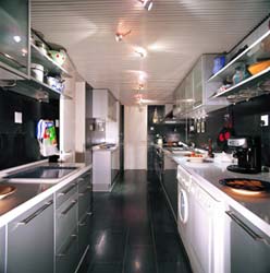 活泼VS封闭 封闭的是格局,活泼的是气氛。受传统饮食习惯和住宅空间布局的影响,大多数工薪阶层家庭的备餐空间尚被禁锢在狭小而封闭的空间格局里,沉闷而寂寞着。 穷则思变,富有创新意识的人勇于打破旧有的这种几十年如一日的沉闷,空间上受到的局限,用室内陈设和家具来弥补。如以长方形见多的封闭式的厨房空间里,墙壁、地面、橱柜的材料与颜色的搭配都是设计师发挥其聪明才智的侧重点,并用多元化色彩搭配的装饰手法,激活狭小的封闭空间。 原本极为普通的水泥地面,因为嵌上了雨花石般彩色有机玻璃块,立即变得活灵活现,让人见之不禁想摆脱鞋袜的束缚,光着脚丫在上面重温一下海边嬉戏的快乐。重新筑建的取代整体橱柜地位的水泥墙体也毫不逊色,开放式的格局设计,冷热 光源 的区分,让存储柜亦是展示柜,厨房小家电及器具既得到了安身立命之所,又成为狭小空间的装饰点缀。 与 其它 风格相比,“一”字型和“L”型简约风格的整体橱柜更加适合这种封闭式的厨房空间。以直 线条 为主的整体橱柜,因磨砂玻璃的加盟,有效地实现了期盼已久的瘦身,从视觉上为厨房减少了一些拥挤感,并为不甘寂寞的早餐桌腾出一席之地;绚丽的橱柜饰面,不但可以激起人的食欲,在纵横驰骋于白色瓷砖间的同色调的勾线和 窗帘 的配合下,彻底消除了沉闷的封闭气氛。(配图01、02、03、04) 通透VS亲情 与家人情感交流不够却搬出厨房特殊环境来搪塞的借口,在越来越多的家庭已无立足之地。即使亲情是鱼,美食为熊掌,现代人仍然找到了两者兼得办法,晶莹剔透的玻璃材料让亲情与美食根本就是子虚乌有的敌对情绪找到了化解的理由。 大量的玻璃似有还无地矗立在厨房与客厅空间之间,餐厅此时如墙头草般势利,见到阔气的厨房空间,便欢天喜地地抗起餐桌餐椅厚着脸皮跑到里面安营扎寨;看到拮据的厨房空间,便又暴露出嫌贫爱富的嘴脸,投入客厅的怀抱。对于餐厅的背叛,厨房与客厅都不已为意,通透的玻璃 隔断 、滑动拉门让它们达成了彼此间的良好默契,即使是暂时的分别,重逢后的盛宴庆典也足可以慰藉了。 为了在客厅面前保持整洁的形象,“U”型和“L”型的整体橱柜出面为厨房空间撑足了面子,大容量的存储空间将厨房中零七八碎一网打尽,科学的流程设置让原来奔东跑西的备餐变得快捷了许多,如果需要帮助,通透的玻璃 隔断 下,无障碍的视觉交流会让外边的人自觉投身到备餐的战斗。 多元文化的绽放 开放式的厨房空间,常因主人的不同喜好多呈百花齐放、百家争鸣之势,跨越古今、中西合璧的装饰手法在这里都可以得到最佳的展现,如想条理清晰的加以描绘,按时代的先后由远及近地讲述或许会更加生动一些。 “民以食为天”的茹毛饮血的新石器时代,厨房空间因为物质的匮乏而得到极度的重视, 线条 硬朗的原木色调的整体橱柜作为厅堂的家具,被赫然摆放在了一进门就能看到的首要位置,不加修饰的原木地板,岩石砌成的装饰墙面,信手涂鸦的斜式石膏顶棚……一切的一切都充满了原始的韵味,想来居室的主人一定是位极具艺术细胞的人,否则此等大胆的装饰不是一般人所敢尝试的。 光阴一跨就是几万年,刚才还流连在原始狂野中的心这次同时被带进两个中西合璧的家庭,西式指的是厨房,中式说的是 其它 空间的装饰布局。现代款型和色泽的整体橱柜在开放的格局下,与客厅或餐厅的古朴中式家具形成鲜明的对比,看来即使是忠实的票友亦割舍不下厨房空间时尚一把的现代情结。 终于回到熟识的现代情境,进得门来,配有铁艺餐椅的玻璃餐桌好像老朋友样,已经在那里静静地等待着我们的归来,因为今天是他和厨房举行婚礼的大喜日子,玻璃吊柜里鲜艳如玫瑰花瓣的饰物,就是月老为他们缘定三生系下的红丝线。 橱柜设计师点评 封闭式厨房: 一套封闭式的厨房如果想具有自己的特色,可以在材料、颜色上下工夫,但关于橱柜的设计及安装最好还是听从专业橱柜设计师的安排。预算有限的情况下可以选用密胺贴面材质的橱柜,颜色多样亮丽,又经济耐用,如果预算高的话,就可以选择烤漆或实木贴皮的橱柜。另外还应在厨房选用的瓷砖、台面的色彩上多下工夫。在款式选择方面,封闭式厨房多以“L”型或“一”字型为主。 半开放式厨房: 如果空间够大,可以将整个空间分为烹饪区和用餐区,再用滑动门或玻璃墙将厨房与客厅分割,这样就可以达到半封闭的同时也与外界保持交流的效果;如果空间有限,就彻底将用餐区从厨房中分离出来,再使用滑动门或玻璃墙加以连接。适合这种格局的橱柜多为“U”型和“L”型。 开放式厨房: 开放式的空间相对于封闭式的空间在设计上的自由度要大一些,我个人喜欢意大利的设计,可以多使用连续的水平 线条 ,使整体的厨房 线条 看起来简洁、流畅,没有间断。增加磨砂玻璃的使用可以使整体感觉通透大气,在空间允许的情况下添加中间岛或与橱柜相连的半岛。材料方面我认为适合意大利设计的材料应该是橡木,不锈钢和天然 大理石 ,但更适合中国市场的应该是高档烤漆,亮光吸塑,樱桃木和高档人造石。 |