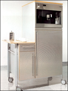 你可以把内置冰箱和咖啡机的移动组合柜从厨房里推出,非常方便。它可用于家庭,办公场所甚至宾馆酒店。