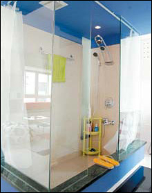 ![]() 在 沙发 上落座看这家里时,发现左前方餐厅、客厅、卧房之间位置,竟然有一小间精巧的玻璃房,细看,里面墙上装着高级的花洒,才省悟到这是间沐浴房。这沐浴房在整套房子里所处的位置,非常地特别:几乎在整套房子的中心位置! 这是套七十多平方米一房一厅的高级公寓。主人夫妇年轻、新潮。他们将原先毛坯时的 隔断 全部打通,形成近乎正方形的一大间:进门玄关在西南位置,转过影壁 隔断 则是就餐区域,会客区域在东南位置,与就餐区域相连,睡眠区域与会客区域相连,中间又有影壁 隔断 ,而沐浴房,则在上述三个区域构成的扇形的轴心位置。 沐浴房一面是墙,中间镶嵌有一宽条磨砂玻璃,在玄关与就餐区域可以想象那墙后面还有空间。沐浴房还有三面为钢化清玻璃。在就餐区域的部分位置,在会客区域、睡眠区域,都可以透视沐浴房,可以看到沐浴房后面的阅读办公区域。 毛坯房规定的卫生间,在西北角落里。就像现在几乎所有的公寓房一样,这卫生间就是安置卫浴三件套的。门进去,是放洗衣机的位置,再进去依次是台盆、坐便器、浴缸的位置,卫生间形成逼仄狭长的长方形状,纯粹的功能空间。 设计师将其中沐浴部分及台盆,从卫生间里“剥离”出来,台盆放在了沐浴房实墙的背后,与就餐区域相邻。使沐浴房与台盆可以透视。而坐便器还在原处,做成一小间封闭式的厕所。 沐浴房比居室其他区域高出一个踏步,一则下面可以走管道,二则从居室整体讲,有种错落感。沐浴房下方又做了像一个台阶那么高的矮墙,使底部形成水池状,以防里面的水外溢,另外下面有矮墙,则人走动,不会碰到玻璃上。沐浴房玻璃与玻璃接面用透视胶粘合,看上去很舒服;沐浴房没有装玻璃门,跨一踏步,就可直接进入里面。沐浴房内做得相当干脆,实墙面贴马赛克,装“高仪”高级花洒,顶部装高级静音 排气扇 ,玻璃与天花板结合处一圈 窗帘 轨道,浴帘从两面交叉拉合,可以遮掩外面的视线,遮掩没有装门的门洞。 设计师提醒 这种透露的沐浴房,适合单身或丁克家庭; 与其说是做这样一种沐浴房,倒不如说这是一种生活形态的表现,所以请人设计,一定要请比较理解前卫生活的设计师;并且,沐浴空间的设计,要与其他空间相谐调; 沐浴房从纯功能的卫生间里“剥离”出来,从施工技术的角度讲,不会有什么问题。无非要做好防地漏、防墙面渗水的工程。另外,可能沐浴房不在居室的角落里,不靠窗,所以要做吊顶,安装排水汽的的管道等。 |
