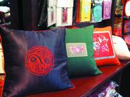 在这间名为“中国风”的家居配饰店里你可以发现许多别样的家居饰品,大多是用传统的中国丝绸和浸染的帆布做成,或夸张淋漓,或雅致含蓄,每一件配饰都是令人心动的故事:方型纸巾盒是闪着银光的藏青色,低部巧妙的围绕了一圈浅粉色,撞色效果有别出心裁的美艳;或者直接就是颜色纯得平静的圆筒纸巾套,再点睛般用上中国结的盘扣和珍珠扣做装饰,配上中式家具更有悠远的韵味;客人来了,快点打开家里珍藏已经很久的红酒,令人赞叹的是,好酒也有好衣裳,这里有不少丝绸质地酒瓶套子,都别出心裁地做成唐式长装、旗袍的样子,翩翩公子的低吟和妙曼女子的柔情就在好酒打开的一瞬间展现;装废弃物品的纸篓,在过节时也可以有一件好的外套,这里有各种形状的纸篓套,考虑到耐用的缘故,大多是黑红相间的绸缎,不知道细心的你,是否不忍心再往里面扔东西?孩童针线包也有不少颜色可以挑,放在家里的桌面上,既是美丽的装饰,又在不少时候可以起到应急作用。此外,造型各异的小钱包包和手提袋子也吸引了不少女士的目光,谁不想在佳节的时候,在自己身上染一点柔柔的中国红,或者涂一层吉祥如意的颜色呢? 店里最多也最醒目的,无疑是这些洋溢着浓郁中国风情的靠枕。几乎清一色是良好的绸缎质地,柔软顺滑中又透露着令人心折的媚来:黑色丝绸靠枕上用嫣红的缎带做装饰,靠枕中间是刺绣的双鱼图案,两条象征着吉祥如意的红色鲤鱼栩栩如生;或者干脆就是胭脂红的面料,乍一看很俗气的红,因为绣上了彩色的花鸟图,节日喜庆的气氛中反而有种说明的意境,恰逢佳节,吸引了不少传统的老广州家庭;还有一种并不多见的帆布仿古质地面料靠枕,嫣红、翡翠绿、水墨蓝、烟赫色,因为深沉和浑厚取代了丝绸的光泽,设计师在靠枕的中部设计了亮片图案的装饰,配合少许刺绣,带来了令人心怡的作品;而流苏的配饰这时候也正好当上了主角,小店进门左侧,几个绸面绣花靠枕层层叠放在一起,轻轻一捧,四周垂吊下来的流苏扬啊扬,柔软凉滑地拂过手背。这些舒适和喜庆的靠枕,为节庆带来了丝丝入扣的温暖感觉。 过节时候一家人团聚可少不了做一顿丰盛的晚餐。围坐在餐桌旁的热闹和喜悦自然少不了一套应节的桌面装饰。其实在这间店里,除了装饰作用的台布,还有不少很实用的碗筷垫子和筷套:筷子大多是红木质地,印着吉祥中国圆的几何图案,上部随意套上一个如意中国结,配着同色透明纱状的筷套,有西洋的柔媚和中国传统的祥和;大方型桌布有很多颜色可以选择,在餐桌四面垂下去的四个角,都细细地绣着精致的图画,每一张桌布,都有不一样的画面,但都一样弥漫着中国传统节庆中的喜庆元素;如果你觉得大方型桌布太夸张的话,就不妨考虑这些细长型搭在桌面的台布,小店四周上方,都层层挂满了这种今季非常流行的两米多长两端呈菱型台布,形状虽然是固定的,可颜色和绸布的质地可就变化丰富了,而且别致的在菱形尾端还有重重缀下来的流苏,牵引得人的思绪飘飞起来…… 喜好装扮的女主人,可以挑选一款喜欢的梳妆盒。扇型、方型、圆型妆盒,里面放上常用的香水和口红等都是不错的选择。颜色的变幻也许会让你眩目,宝石蓝配上金黄色纹路的绸缎面料,白色泛晕黄光的帆布配上翡翠绿的边角装饰,黑红磨沙面料加上金色镶边和金色盘扣,最彻底的还是胭脂红上跃然而出的鸳鸯戏水图…… |