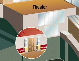 大小:92英尺长,63英尺高塔状的道格拉斯冷杉横梁支持着不锈钢屋顶,周围环绕的是玻璃,混凝土和石墙。这间房子的大部分都依靠在山边,面湖的窗口可以一览西雅图以西的风光。由入口到底层共要走84级,怕会转得晕头转向的人也可以坐电梯。 5.家庭影院
