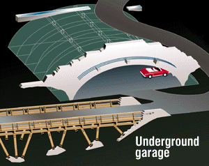 地面:这5英亩地种满了原生桤树,枫树和道格拉斯冷杉,并且尽量保持其自然外观。大部分的人行道都铺满石板,水泥外墙用沙岩和花岗岩镶嵌。 主人家居部分:盖茨家人所住的11,500平方英尺的内宅居然非常简朴,具有四个卧室和一个保姆房,还连着一个四车车库。最下层包括一个电子乐队练习房及设备比大多数健身俱乐部先进得多的健身中心。 客房部:位于这栋豪宅的南边,包括主入口(包括巨型楼梯),剧院,图书馆,主饭厅,会客厅和会议中心。客房却只有两间。 建筑特点 框架主要是木架构,使用了大约50万块 板材 。 地基由于山边是地震区,所以地基下铺了水泥墩并且使用了多层钢钩和加固措施。厚实的加固墙所带来的排水问题通过埋在地下的排水管统一排放到河口中去。 电器几公里长的通讯电缆(大部分是光纤)连接了屋里屋外的多个使用Windows NT操作系统的服务器。每间房都使用触摸感应器控制照明,音乐和室温。访客都要佩带电子探针,方便电脑知道他们是谁和身处何处。灯光和其他设定都是自动调整的。 1. 泳池大楼