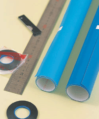 事先准备深浅不一且背面有可撕下的纸基的蓝色胶纸、黑色胶条、尺子、铅笔、剪刀等工具。