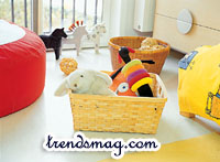 零碎物品多的地方,小竹筐都能派上用场。每天进家门的时候是不是总是把钥匙随手一放,然后出门时到处寻找。在门厅的台子上放一只小筐,你的钥匙就有家可归了;卫生间里高高低低、肥肥瘦瘦的洗浴用品怎么也排不出整齐的阵容,小筐多少会使它们有点规矩;谁家没有几个遥控器,东一个西一个,找一个小篮子把它们收在一起,放在 沙发 边或茶几下,很方便也很别致,不是吗? 如果能在这些小篮子里衬一块漂亮的布,再做一圈儿裙边翻在篮子外边做装饰,会更漂亮。家的美丽温暖,就是这样用你的巧心和巧手一点一滴地装扮起来的。 |