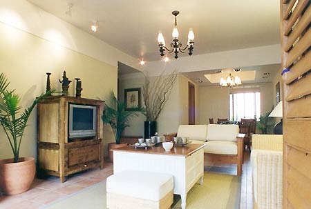位处广州番禺的星河湾以高品质的生活空间及优美环境吸引了众多客户。这套单元设计简洁自然,展现出的是港式家居风格。自然的木质色调使居室充满休闲的氛围,是快节奏都市生活的休恬的港湾。 布置简洁,客厅的以黄色为主调,展现一个休闲的氛围。 休闲的藤制 沙发 配合白色的软垫,配合仿古 地砖 ,展现出和谐宁静的家居生活气氛。 仿古 地砖 配合造型古典的 吊灯 ,地面靠墙边处铺设卵石,配上自然古朴的餐台椅,营造出一个良好的就餐氛围。 电视墙处理相当简洁而富品味,色调古旧的电视柜是客厅的焦点所在。 |