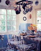 One本色家具铺底色 ![]() 既然无法改变家中的基础面貌,那么就改变家中的第二层基础——家具。同一个基调因为家具的不同会穿插出完全不一致的风格。早期乡村风格的家具派别主要来自实木,以樱桃木(欧式)、榆木(中式)居多。这两种 木材 都比较容易造型,樱桃木追求结构的灵巧和轻盈,适合法式或英式乡村风格;而榆木的纹理非常质朴,在结构和造型上倾向敦实和质朴,长条的餐桌或者宽大的桌椅非常常见,使用起来就像在郊外野餐一样,立刻就能拉近用餐者的距离。但无论属于乡村哪个派别,这类型家具都非常讲究功能性和实用性,因为乡村风格主张生活的闲适,对生活中实际运用到的物品细节考量非常到位。这在厨房中有特别的表现,许多厨房家具都设计出精巧的收纳空间,有的甚至连 抽油烟机 和水槽都设计进橱柜,小小的橱柜,可以翻出各式各项不同的实用工具,不用时关起来,又是一个干净简洁的木头橱柜,非常神奇。 最近一年流行着的乡村风格家具相比较以往有了很大的变化:其一是铁艺的运用,铁艺在18世纪的欧洲风格家居运用非常广泛,但对于最近几年的国内家具设计来说,因为铁艺材质的良莠不齐,使得这种材质沦为到只能做做花架、栏栅等。然而,好的铁艺本身的本色特点也逐渐被国内的设计师所注意到,用上品铁艺制作而成的铁架床、铁艺与木质品结合而成的各色家具,让乡村的色素更本质,也得到了很多乡村风格爱好者的青睐。其二是家具的工艺处理,简约派的家具要求平、整、硬、板,乡村家具却恰恰相反。松软的 沙发 、故意磨旧(做旧)的家具、最本色的材质都是上选。重点在做旧工艺,在早先的中式古典家具中也有类似的工艺,但彼时的做旧工艺是为了提升家具的古董价值,在着色和用材上都比较浓烈,做旧的工艺侧重体现在人为使用的痕迹模仿。而对于乡村家具来说,天然的痕迹是最唯美的,虫子洞、伐木的钉眼、漆面不整的破皮是流行的做法,着色上也较为轻盈,淡淡的浅绿色、发旧的乳白色和浅浅的粉蓝色都用得很多。值得一提的是,好的做旧工艺会在对此进行例常的刷漆保养,在出厂前也要进行漆面处理,否则会导致破面扩大。这是做旧工艺的家具价格差价的重要因素。 Two花色布艺软装饰 ![]() 布艺是乡村风格中非常重要的运用元素,可以说,如果你善于调整和打扮,布艺会让你的家改头换面,想是什么风格就是什么风格。布艺可以发挥的地方很多,首先是墙面,如果墙面的颜色过重,重新铺壁纸也显得困难,那么,实现乡村梦的捷径就是挂上一块布,简单的做法是用泡沫和木条做成软框,然后在表面贴上整幅的布(也可用各色花色拼凑),靠墙一站就能立刻改变大基调。其次是 沙发 和座椅,简约的直 线条 如果用了灰黑色,当然就是硬朗的风格,但如果大胆的使用花布,也会让简约疯狂错乱。而不钟意的座椅,给它穿件“衣服”就立刻大变样了。居家免不了充满各式各样的家电用品,如果和乡村家具不协调的话,可以采用布艺装饰法,例如用花布给面盆做围裙,用花布包镜子边等。还有就是平面家具,这就更容易了,一块布搭上去,看它还不变“魔术”?甚至于,多做几个套,隔三差五换一个,心情就那么变来变去,让人兴奋。 那么,流行着的乡村风格的布艺都是哪些呢?从材质上来说,衬托简约风格的纱料、缎料逐渐走低,而本色的棉麻是主流,布艺的天然感与乡村风格不经雕琢浑然天成;从花色上来说,单色块(红、黑、灰、白)布艺不再流行,而各种繁复的花卉植物、靓丽的异域风情和鲜活的鸟虫鱼图案卖得正火,当然,这也是取决于它的舒适和随意。 Three甜美花卉活氛围 ![]() 说到乡村,不能不提花卉,当然,其实每类家居风格都无法离开植物,但如果仔细观察的话,会发现植物有物语,某一类植物对应的只能是某一类家居风格。对于乡村风格来说花卉的运用是非常重要的。阔叶或者较为男性风格的绿植都不太适合乡村风格,想象一下,乡村风格可都是有一个贤惠的女主妇哦,女主妇喜欢的东西是哪些呢?满天星、熏衣草、迷迭香、新娘、雏菊、月季、玫瑰等等有着芬芳的香味,又随时在太阳升起时朝你开花微笑的花卉性植物都是她们所喜爱的。而用花园里的新鲜花草、或者某一次甜蜜浪漫的家庭烛光晚餐所剩下的干燥花瓣和香料,穿插在造型简单的塘瓷瓶罐,甚至是破陶盆都非常富有乡村气息。 Four 漂亮盘子来点睛 ![]() 没错,说的就是盘子,最最小资也最最有趣的盘子,像装饰画一般使用。这一创意来源于法式乡村风格,在阳光普照的普罗旺斯,人们热衷于用各种漂亮的盘碟来盛放美食。在喧闹的party沉寂后,那些热情好客的盘子就一个个底朝天呆在壁柜内,不知道是谁发现了盘子“站”在壁柜当中的姿态十分优美,于是,盘子就被运用到室内装饰了。盘子与生俱来的质朴、不施雕琢的单纯味道,适合摆放在那些钟情乡村风格、热衷美食、喜爱花哨的家,盘子与乡村风格的邂逅结果十分美妙。一起来学习并赋予漂亮的盘子更多重的功能,也许,你还能寻找到更多关于盘子,或者居家用具别样的乡村奥秘。 挑选适合被挂起来的盘子 能被挂起来的盘子虽不完全是天姿国色,但至少不能是庸脂俗粉,常见的图案和花样只会暴露你盲从的审美品位,绝对不会提升一丝一毫家居魅力,所以,挑选盘子非常重要。一般来说,盘子的图案可以分为人物、植物、动物、卡通、抽象,从