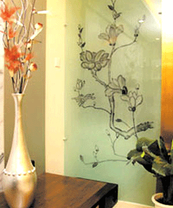金色:沉稳富贵,未见俗气 客厅里最抢眼的装饰就是楼梯旁那根金色的柱子了,转过玄关第一眼就被它的富贵所吸引。虽然是金色,但是颜色选的却不是西班牙宫廷式的耀眼夺目,一片金碧辉煌,那金色有一点亚光效果,有一点暗暗的,在20平米的客厅里不会光辉灿烂到抢夺了所有的风采,又恰到好处地起到一柱定乾坤的作用,客厅里浅色的墙和深色的 沙发 都靠它来提亮,成为了房间里的主色。金色立柱的旁边是整幅磨砂玻璃,上面手绘着一株亭亭玉立的玉兰,花瓣饱满,叶片肥厚,水墨的效果大大中和柱子的富贵强硬,柔弱细腻又高贵典雅。 配合金色的立柱,客厅 沙发 扶手也装饰了金色攒心花瓣和流苏,玻璃茶几和转角小桌的支架更是全部金色。茶几的支架是泰国宫廷式大象的简化,接触玻璃的吸盘是莲花和涡卷造型,富丽却不浮华。客厅的灯光也是暖暖的金色,照耀在胡桃木展示格子里,映衬着墨绿描金的酒具,恰到好处地彰显了主人的身份年龄,也符合中国人中庸平和的祖训。