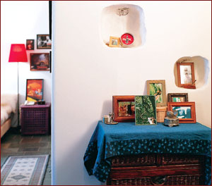 “没有玻璃的窗户”和“呼吸的门”:女主人装修时花了一大笔钱买木料做门窗。 塑钢窗 里另加简单的纵横格窗棂,皆是合榫接头,木栓插销。这种没有玻璃的窗户与家中物件很和谐。门框的包边是一段段木块连结成的拱形, 线条 柔和又没有人工痕迹,只应了女主人的要求----让“门能呼吸”。