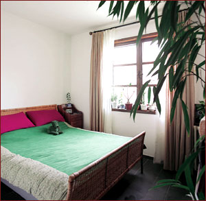 罗雪:好像没有,我想是通风足够好。南北通透的屋子基本没有设置墙或者门,我们还在客厅和厨房装了风扇。选择上好的片岩,是因为片岩有小孔,可以吸收水分。在卧室放几盆小植物,丝毫不影响健康与睡眠。