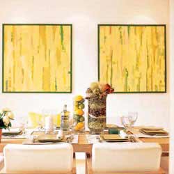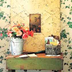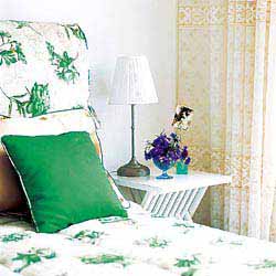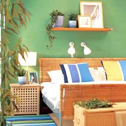 ![]() 将一小把稚菊插在玻璃杯里,摆在床头,与淡雅清新的床罩很谐调。 ![]() 将卧室床头的整面墙都涂成舒服的绿色,令人神清气爽。藤制家具在绿色植物的掩映下让人感觉很清凉。 ![]() 抽象画在这里虽不代表什么意义,却是一个很好的色彩衬托。 ![]() 虽不可能将满屋都贴上这样的壁纸,却不妨在较上的房间做一下这样的尝试,绿叶纹样的壁纸衬托着铁皮罐头外壳制成的画框,还有旧旧的书桌、有岁月沧桑感的铁皮盒,一个怀旧风格的角落就这样营造出来了。 |