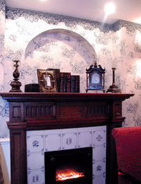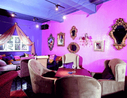 休息区床榻周围,烛光摇曳,灯火明灭,如醉眼看星。细看这些烛灯,一件件都细巧而艳丽,带着浓郁的异国风情。一例的蓝、紫、粉色,让人惊叹与墙壁如此的搭配。 “每一样,都是我从各地淘来的。”装修只花了三个月,淘换这些小摆设,却用了小楠半年之久:“还没装修前,就把这酒吧的风格想了千遍,早就细心留意上了合适的小玩意儿,才能在开业不久就变戏法一样地全部置齐呀。” 说话间,酒吧内的灯光一变,如舞台上的场景变化。抬头,又见一出好戏:房顶上的主 光源 布得错综复杂,刹那间变换了队列。学美术出身的小楠,除了在配色上的大胆,在装修布光上也颇费心思:这底层的爵士酒吧区,除了喝酒,还有用餐的功能。喝酒时,灯光照在脸上要好看;用餐时,照在菜上也要好看。这餐厅的布光可费了我好大的心思。做完餐厅,我都快赶上咱剧组里灯光师的本事了。 迷醉 于一帘酒幕 绕过一面墙,楼梯惊心动魄地出现。两层楼高的金色珠帘自天顶垂下,如杜松子酒的雨幕,闪闪发光。珠帘后,金色的画框,大大小小满墙。在灯影酒色中,一墙绿色如薄荷般清凉。 二层是典型的北欧乡村风格,花花的壁纸大量使用,在暧暧的氛围里,仿佛可以闻到花香(上左:二层卫生间,上右:用餐区漂亮的壁炉)。 纱帐如雾、床幔如烟,美丽的床榻被小楠用来作为休息区的 沙发 。