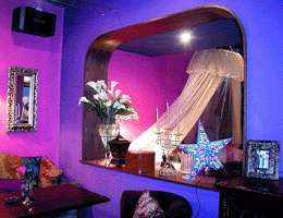 醉情美丽岛 一层:调支PINK LADY 迷醉 在色彩里 美丽岛葡国餐厅,名字已够香艳。小楠的装修杰作会是如何惊艳?在期许中推门而入,进门就被艳丽酒色击中心脏。桃红追逐着艳紫,迷离了双眼;烛光舔着银镜摇曳着心智……底层的爵士酒吧,让你滴酒未沾却烂醉在这异国春风中。 转身向内,绕过光影叠叠的墙、圆拱的窗,在一张艳丽到极点的睡榻前,我张大了嘴。纱帐如雾,床幔如烟,一群泰丝靠包让人心跳地艳丽着。在纱幔之间,我们看到了同样艳丽的詹小楠,斜靠在迷离的靠包上,向我们举起手中的PINK LADY。 “我拿它做休息区的 沙发 ,效果不错吧!”小楠轻轻拍了拍睡榻。不错,醉死在上面的心都有了。