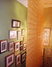 惊心动魄的楼梯,金色珠帘从顶垂下,如同杜松子酒的雨幕。
