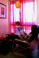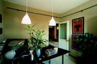 房屋面积:108平方米 装修造价:3万元(不包电器) 金钰说,她想把现在的装修换掉。我很惊讶,啊,还很新啊,也很漂亮啊,怎么舍得呢?金钰说,因为没有新鲜感。已经两年了,有些厌倦了。 金钰和叶友两年前在城郊买下了这所房子,门前是花园,楼顶有露台,无可挑剔的两层小楼。虽说距离城区有10多公里,但全程高速公路连接,出入也还方便。房子的装修是金钰和叶友一同设计完成的,难得的是两人在家居美学观念上高度一致,合作过程几乎没有产生任何分歧,不过20天,就把房子顺顺当当地拿下来了。 金钰和叶友这个温馨小窝里,绝大部分的家具都来自“宜家”。金钰说,两年前的自己特别迷恋“宜家”,而那时买房把钱花得都差不多了,只好常常跑到“宜家”“淘”便宜货,所以家里的东西差不多都是“宜家”里最最便宜的货色,像客厅那盏落地纸灯,才60块钱!而书房那张工作台,桌面原是国内一家公司以数千元的价钱从国外订购回来的,到货后发现尺寸有误而拒收,供货方只好低价处理。叶友恰好捡了个大便宜,乐滋滋地把桌面扛回了家,然后跑到“宜家”给它配了4条腿。 最初的时候,全屋墙壁都是米黄色的,因为那时父母与他们同住,老人家喜欢传统的浅色调,接受不了太强烈的改变。过了一段时间,父母走了,房子变成了小俩口的二人世界,叶友找来工人,把好几面墙换成了现在的紫褐色,让房间更具时代感。他还让工人顺带把裸露在墙体上的所有管线,按相应的颜色油了个遍,效果挺好。 家里的卫生间是金钰很喜欢的一个地方,与大多数人家不同,他们选择了用大鹅卵石铺地。金钰说,没有这套房子的时候,两人一直租房住,所有卫生间都是用瓷砖,实在让她厌倦透了。现在用鹅卵石,不仅触感自然、舒服,打理起来也方便,脏了用水 龙头 对着猛冲就是了。 叶友是个画家,他一直想用自己的画点缀整个居室,可是――他的画太大了,摆不下。还是金钰聪明,她用相机把画翻拍下来,然后用电脑进行处理,做了几张喷绘的复制品,并且用漂亮的相框镶得好好的。叶友左看右看,非常满意。 金钰和叶友在房子顶楼辟了个主人卧室,虽说因为日照的关系,房间到了夏天比较闷热,但因为宽敞,住起来还蛮舒适,而且私密性绝佳,完全不担心会有噪音滋扰。顶楼另一侧是个小露台,露台顶有一小块天花,玻璃做的,玻璃天花下是一张休闲椅。金钰最喜欢坐这看书,月淡星朗的夜晚,一抬头,便是星斗漫天了。