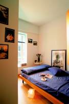 屋主:陈诺 职业:警察 房屋面积:40多平方米 装修造价:3万元(不包家具、电器) 那是陈诺第一次打电话来办公室,自荐家居。同事把电话转给了我。我说,要不你先简单描述一下你的家吧。陈诺说,房子不大,我一个人住。最大的特点是全屋的墙壁都是蓝色的。这是原话,简练干净。后来我才知道,他是警察。 这是我们第二次走进单身汉的家。陈诺置办下这个“蜗居”,考虑更多的不是安家――单位里也有集体宿舍让他住。陈诺希望在压力极大的工作环境以外,有个完全属于自己的“窝”,不受干扰,彻底放松。房子不大,但厅房厨厕俱备,窗户明亮,地板干净,而且,精致清素得让人惊奇。 蓝色是房子的主色调,床、餐椅、 窗帘 、地毯……莫不如此,就连客厅里缓缓放着音乐的DVD机,都在暗暗散发着蓝幽幽的光芒。这是陈诺一大早便设想好了的:蓝色是自己最喜欢的颜色,且用的人家又不多。大概所有参观过的人都同意陈诺的这个创意,唯一的例外或许只来自外甥女,小姑娘4岁,有自己的观点:“舅舅,你为什么不用紫色?” 房子小,合理利用空间便成了大问题。不知哪来的灵感,陈诺把客厅正对 沙发 的那面墙敲开一个洞,做了一个凹进去的大方格子替代了电视柜。墙的后面是卧室,陈诺依墙在卧室里做了一个衣柜,柜门恰好把从客厅凸出来的格子包含其中。而把衣柜最上方的通花柜门打开,里面竟藏着空调。真是掩人耳目到了极致。 我家主人 陈诺,30岁,未婚。 一个极度崇尚健康生活的人,热爱运动,绝不吃街头盒饭。单位自然是有健身设施了,但为了追求热火朝天的气氛,陈诺交了1000多块钱的年费,常常坐半小时公交车到体育中心锻炼。因为坚持每天跑步15分钟上班,被同事引为笑资。陈诺身体极棒,他担任警队后勤工作,不用捉贼。但有一次,他到某闹市区约见朋友,正巧遇到该路段民警在追一小偷,陈诺立即加入追赶队伍,并最终把坏人捉住。据说他当时确实跑得比贼都快。 陈诺每天的晚餐是到麦当劳吃一个最小的汉堡包,外加可乐一杯,圆筒雪糕一个。说是健身教练嘱咐的。陈诺一直懊恼家里弄了个厨房,因为装修完毕以后,厨房总共就用过一次,做的还只是早餐。如今陈诺打算把房子卖掉,在体育中心附近再置办一处公寓,不带厨房的。 陈诺时不时买些不同的花回家,家里因此总是萦绕着若有若无的花香,清清凉凉的。陈诺爱干净,家里的打扫工作从不假手于人。进门的时候,我把鞋子随意地脱在了门边。走的时候,我发现鞋子已经连同其他人的鞋子,整整齐齐地被摆在了小地毯上。也不知陈诺什么时候整理的。 我的玩意:餐桌上方的画。那是陈诺初恋结束时,一个爱画画的朋友送给他的。一枝盛开着桃花上,孤零零地站着一只小鸟。无数人问陈诺,为什么鸟是一只而不是两只?陈诺会回答,这代表着那只鸟马上会遇到无数的桃花运。 我最不满意的地方:电视墙上方的格子。陈诺原本打算按照卧室的创意,把客厅的空调用同样的柜子装饰起来。结果考虑不周,导致无论摆放位置,还是通花的样式,都让人联想到“神台”。 我最喜欢的地方:客厅的地板。中午下班回来,陈诺通常都不进卧室,开着音乐,在客厅地板躺下,一首音乐放完,人就睡着了。