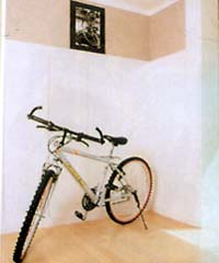 房主人很喜欢运动,便放了一辆自行车在工作间。不过,在此处更多的起了装饰作用。