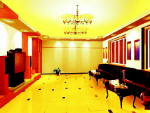 背景墙、窗户、家具、 吊灯 的造型及款式营造了一个中式的客厅。以 吊灯 为主 光源 ,四周在简洁的吊顶上均匀布置 射灯 ,共同散射出橘黄色的光线,与地面的色彩浑然一体,使大环境隐隐透出古典的气息。家具、电器以实用为主摆放于客厅两边,中间留下的很大的空间供主人活动,客厅的使用功能得到了充分体现。 |