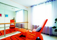 方案解决了现代年轻人的运动需求功能,为打破狭小空间,整体色调采用不同质感的 白色材料,统一并富有空间的变化,镜子和珊瑚 地灯 反射了光线的空气韵律,紫色的纱帘增加了生活空间的玄妙和浪漫。