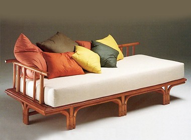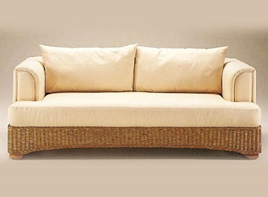 高超的藤编技巧与布艺的结合,把这件 沙发 的工艺提高到精致的程度。色彩与空间的营造,落落大方。色彩分割的对比协调合理,扶手与靠背的延续非常紧密,起到装饰 沙发 的作用,又有具体的实用意义。