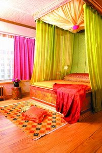 异国架子床 异域情愫的暗香 很难道清此类床种属于哪一风情,它糅合了各种风格,引入了中式的围合、欧陆的繁复、泰式的香艳、乡村的随意,所有元素的撞击营造了多国混搭的异域风情,也难怪,当中西文化交融合璧,再没有比这更适合的一张床了。 |