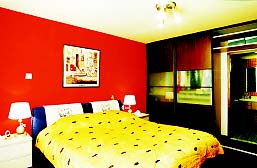 图为:整套卧室时尚而不浮躁,大幅的落地 窗帘 和深色的屏风又使整个卧室显得优雅不俗,气质非凡。整个设计处处体现居者的成功和做事力求完美的性格。 图为:本案例室内使用面积为12平方米,不加任合修饰,只一块浅色斑纹的 大理石 点缀,暗藏式 推拉门 壁柜解决了衣物的存放,又自然的成为床头饰墙。 图为:黑白方圆简约精致,是格调还是性情…… 图为:大面积的红色,让雅致的咖啡色也跳跃起来,整个空间充满了色彩的律动。