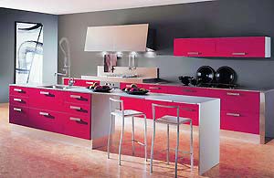 | 明亮、宽敞的空间充满现代感的橱柜,已经不只是简单的烹饪场所了。 设计一个时尚、灵活与实用的厨房是家居快乐生活的第一步,如果厨房的色彩杂乱无章,就会使烹调者的眼睛得不到放松,产生疲倦感。那么,我们就厨房的色彩做一个YES和NO的游戏吧! 橱柜色彩的YES与NO Yes:随着现代装饰材料的大量面世和各种颜色、图案及表现技法的层出不穷,厨房装饰陈设的色彩组合的选择范围越来越大。厨房的各个面都需要有色彩,而且还要有亮度的空间,因此在厨房装修、布置家具和陈设小物件的过程中,色彩设计的大原则是协调统一。 对厨房家具色彩的色相要求,是能够表现出干净、刺激食欲和能够使人愉悦的特征。 大部分人都喜欢为自己的家营造一份温暖的感觉,面对着大量的金属厨具的冷感,如何能缓和这种感觉,使厨房给人以温暖的感觉呢?秘诀在于使用柔和以及自然的颜色。原木调子加上简单的图案设计的橱柜组合,十分具有田园风味;浅色调的橡木纹理展现着清雅脱俗的美感,使厨房的设计更显清新。 近年在家具设计中广为流行的简约风格已逐渐蔓延到厨房设计中,创造清新、明快的厨房空间,消除杂乱色彩和 线条 ,是今天厨房设计的趋向。厨房本是个繁杂之所,如果能在设计上将其简化,那么心情也将变得更轻松,工作也更高效。于是白色、灰色成为最流行的色泽,橱柜门板、台面和把手的设计变得非常简约,以直 线条 为主。纯白与原木条子的配合,使厨房蕴藏着一股冷暖相融的独特格调。黑色的橱柜配上柚木地板,感觉完全不同,立时显得高贵了不少。大量闪光的金属材料也纷纷登场,给厨房带来一股凛冽的工业味,有的进口橱柜用上金属铝箔面,给人以极强的视觉冲击。 No:特别注意不要使用有立体感的图案,或是明暗对比强烈的装饰材料,这不仅会使厨房面积在视觉上显得狭小,而且容易使人产生高低不平、凹凸不平的错觉。在厨房整体色调确定的情况下,电器色彩作为补丁色,不宜与主色调形成太大的反差。过多过杂的色彩在灯光反射时容易改变食物的自然色泽而使操作者在烹调时产生错觉。 厨房墙面的YES与NO Yes: 乳白色和白色 如白瓷砖或仿瓷涂料,给人以明亮、洁净、清爽的感觉。有时也可将厨具的边缝配以其他颜色,如奶棕色、黄色或红色,目的在于调剂色彩,特别是在厨餐合一的厨房环境中,配以一些暖色调的颜色,与洁净的冷色相配,有利于促进食欲。 No:厨房墙面不宜使用反差过大、过多过杂的色彩。 厨房的墙面装饰也要结合灯光的色彩安排,因厨房操作时相对温度较高,一般配以冷色为宜,如白色、浅黄色。此外厨房墙面的装饰还要注意一点,就是装饰材料要尽量耐脏,而且要易于清洁,这点是由厨房的特殊功能决定的。厨房的墙面装饰不宜过多,它主要是通过厨房的基本设施来体现的,装饰性也要服务于这些基本设施功能的需要。基本炊具的合理摆放、挂置,同时也是装饰厨房墙面的重要因素,这样才能达到较好的装饰效果。 空间大、采光足的厨房,可选用吸光性强的色彩,这类低明度的色彩给人以沉静之感,也较为耐脏;反之空间狭小,采光不足的厨房,则相对适于明度和纯度较高、反光性较强的色彩,因为这类色彩具有空间扩张感,在视觉上可弥补空间小和采光不足的缺陷。 五种经典配色法