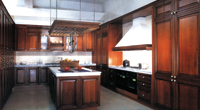 实木厨房的造型典雅优美,富于变化,这取决于它的与众不同的原木色泽与纹理,特别是它与众不同的质感。用在厨柜中的实木以樱桃木、胡桃木、橡木、枫木为主。一般厨柜的门框为实木,门芯为中 密度板 贴实木皮,这样可以保证实木的特殊视觉效果,而且边框与芯板组合又可以保证门板强度,令实木不开裂、不变形,保持历久长新。 在新一轮的厨柜流行风格体现上,我们依然可以看到永不衰退的实木厨柜作品,原色纯真实木的尊贵气质,细节上玻璃雕花的设计元素,加之现代亚光和仿旧处理,对细节的精美雕刻,让古朴与怀旧的气质展露无遗。实木所表现出的经典设计风格与现代实用功能的完美结合是新一季实木厨柜的专注表达。 因为实 木材 质的高成本,所以实木厨房的造价会高出其他材质的厨房。一般订做一套 实木门 板的厨柜大约要几万元,甚至十几万元,按每延米计算约为5000~6000元,比其他材质的厨柜要高出三分之一左右,这在所有的门 板材 料中都属于顶级消费。不过钟意于实木厨柜的消费者也越来越多,因为喜欢实木的自然与环保色彩,而且更有生活气息。挑选实木厨房时应注意看其表面木纹,木节、活节属于正常构造,死节和腐朽节应当避免;实木柜体和门板可使用液体腊保持光洁。 实木是大自然的产物,它有着一般材料所不能达到的返璞归真的效果,好的实木厨房具有高贵不凡的气质。但是在人们的传统印象中,实木是进不了厨房的,其实这是一种误区,经过工艺处理的实木厨房完全可以达到美观与实用的效果。