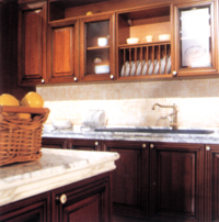 经典型:传统的边框造型 实木厨房运用最多的就是这种传统的古典风格,它的色泽淳厚,质感柔滑,就令整体厨房看起来更精典。 这款实木厨房是一款高档的实木古典整体厨房。整个厨房在细节的处理上非常讲究,它运用类似“古堡”布局表现出高大宏伟、成熟稳重的气势,所有的配件拉手都以古典风格制作,融合在整个柜体的风格中。 这套厨房采用樱桃木制成,它的实木边框设计成了经典的“七层台阶”,采用了“七刀型”工艺,这个台阶的制作体现了它的工艺水准,这在其他材料中是不可能完成的。而且台阶之间也采用了做旧处理,更增添了意大利实木厨房的大气。 质朴型:刀型门板的乡村气息 这款由橡木贴面制成的实木厨柜,采用的橡木来自意大利的威尼斯,因为威尼斯长年雨水多,所以在那里生长的 木材 具有很强的防潮性能,不怕水,非常适宜用在厨房柜体中。它的木质纹理保持完整,柜门上制成古典的“刀型”,拉近了与自然的距离;木格栅的柜门更增添了乡土气息。 厨房是家中受惠于新科技最多的地方,同时也是最需要精心筹划设计的地方。现在的楼盘,厨房的空间总是显得相当缺乏和单调,对于厨房面积相对狭小的住户,通常会以减少厨房电器来换取操作空间,其实,越小的厨房越需要电器化,因为只有这样才能真正节省空间和物件,而科技永无止境的发展造就了电器的尺寸可以越来越小,即便是在最小的屋子里,也可以匀出一些可加利用的空间来把这些科技产品放进去。 不论你的需求是什么,同样可以找到一些合用的小尺寸厨房电器,将你的厨房武装到牙齿,使你在厨房的每一刻都能享受科技带来的舒适与便利。