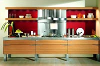 厨房的装修设计应该充分考虑厨房的基本功能和使用要求――烹调、洗涤和储存。设计中应遵循以下几条原则: 一、实用与方便厨房的设计必 二、合理布局灶(炉)具、 抽油烟机 、 热水器 、水池、壁柜、冰箱等设备的布置,要有利于其使用、清洁、维修及安全,各种装饰物不得影响采光、照明和通风。 三、煤气管道设计装修时,不得移动煤气管道或将煤气管道密封于墙体内。 四、材料选择地面宜选用防滑、防水、易于清洗的瓷砖等材料;墙面宜用防火、抗热、防潮的材料;水 龙头 应采用有冷热水功能的瓷心水 龙头 。 五、色彩与灯光厨房的色彩可根据个人喜爱选择,通常采用中性色调。中央照明宜采用 吸顶灯 ;灶台、工作台的局部照明,可用嵌入式日光灯或 射灯 。 |