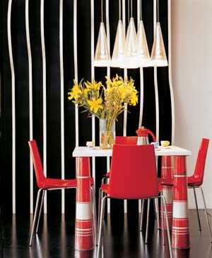 餐厅与厨房的融合似乎已成为一个必然的流行趋势,开放式的厨房被越来越多的人接受,在那些新建或是翻修过的住宅中,经常可以看到厨房和餐厅之间其实只有一面活动墙相隔。越来越大的餐桌设计可以容纳更多的人,不仅为家庭聚餐提供了方便,同时也是做饭备餐的好地方。餐厅正在成为继客厅以外的第二大家庭聚会场所,在这里人们不仅可以享受美味佳肴,还可以轻松愉快地进行交流。只是相对于客厅的正式,这里的气氛更加轻松随意一些。 ![]() 这是一个代表着未来餐厅发展方向的设计。整个厨房像是个色彩鲜艳的美味实验室。 |