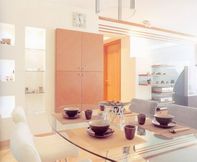 吃一顿惬意的饭,常叫人感觉轻松。在居室里,餐厅乃一家人共聚的活动中心,桌椅的安排、色彩的配搭、格调的营造均影响人们对这个用餐空间的观感,轻松的布置与愉快的气氛,有赖环境与人共同努力创造。那么,规划时便得处处用心。 ◆桌椅安排 餐厅内最吸引人注意的,可说是餐桌和椅子,不同的桌椅具有不同的特质,有助营造整齐布局。一般而言,长餐桌能够尽用长而窄的餐厅格局,四方形的小桌子较通合小型餐厅。而圆形的餐桌则能柔化方形的空间,也很配合中国人讲求吃一顿团圆饭的意义。 至于椅子的选择,首先考虑的是舒适度,因为一张令人坐不安稳的椅子,叫人难以专心细意品尝桌上的美食。选定椅子的款式后,需确定坐下时膝盖和桌子横架之间有充足的空间。有扶手的椅子较无扶手的椅子舒适,但扶手椅占用较多的空间,亦难以推入桌下安放。摺椅的舒适度较低但收藏方便,适合狭小的空间。如果餐厅空间有限,可考虑使用幼脚、曲线优美、椅背镂空的餐椅,看起来感觉较轻盈。
