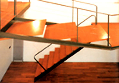 设计:阔达装饰公司沈戴华工作室 楼梯的设计风格是极简的现代主义,依靠两层楼梯结构及形式的变化,仅用钢与木两种材料就呈现了几种不同的表现手法,点、线、面结合的十分完美,没有丝毫的拖泥带水,纯粹至极。看似简单却颇具大师风范。 |