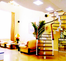 如果你的家是复式结构的房子,那么相信家中有一样东西是必不可少的,那就是楼梯。楼梯是家中“上”与“下”之间的一个连接,但不仅仅如此,在这个上与下之间,我们需要的是安全、便捷。而且,如果运用得当的话,楼梯会成为家中非常引人注目的一个亮点。 许多复式结构的房屋在交到用户手中的时候,通常会有预制的楼梯,但出于各种各样的原因,可能不会让人满意,毕竟这是一个个性化的年代,千篇一律的固定式样总是有众口难调的尴尬。所以需要选择一个很个性的楼梯。可是如果需要自己改装楼梯的话,我们应该如何选择? 让空间来决定形式 从形式上看,楼梯大致可以分为三种: 直梯——最为常见也最为简单,颇有一意孤行的味道,几何 线条 给人挺括和“硬”的感觉。直梯加上平台也可实现拐角; 弧型梯——以曲线来实现上下楼的连接,美观,而且可以做得很宽,没有直梯拐角那种生硬的感觉,是行走起来最为舒服的一种; 旋梯——对空间的占用最小,盘旋而上的蜿蜒趋势也着实让不少人着迷。 我们在选择房子的时候,空间的尺度、层高的尺寸就已经定形,而且很难改变。为了上下楼的方便与舒适,楼梯需要一个合理坡度,楼梯的坡度过陡,不方便行走,会带给人一种“危险”的感觉。如果轻松地拾级而上,就需要有一定的空间给楼梯一个延伸的余地。 在空间尺度与层高尺寸充裕的情况下,选择什么样的楼梯并不成问题,但如果这两个条件受到限制,就不得不谨慎考虑,以利于空间的节约。对于狭小的空间来说,旋梯可能是比较明智的选择。 所以,选择你家的楼梯,最后的决定可能真的不是你的主观要求。空间的“内容”决定楼梯的形式。 让家人来决定坡度 如果你是一个攀岩运动的狂热爱好者,那么建议你的家中最好取消所有的楼梯。可是我们总要与家人同处。 对于楼梯的选择,还要根据家中的成员来安排。虽都是一家人,但个人之间的身体状况都存在着差异,总是有强有弱。老人和孩子属于家中最需要被照顾的一方,他们大概更希望楼梯的坡度缓一些、踏步板要宽一些,梯级矮一些,或者,他们也希望楼梯的旋转不要太过强烈,这样在上下楼的时候心里才会感到踏实。 仔细观察楼梯首、末步的高度差 。所谓楼梯的首、末步,就是与地面相接的第一级踏步,与楼板相接的最后一级踏步。这两步不仅是上下空间的连接点,也不是楼梯的支持点,它们还是整段楼梯中最关键的地方。在这两级上,最容易出现的问题就是踏步高度与楼梯中间其他级的不一致。 楼梯最为忌讳的就是各个台阶的忽高忽低。 相信绝大部分的人都有在楼梯上被绊或踩空的感觉,这两种滋味都会让人惊出一身的凉汗。因为人在上、下楼的时候,那种节奏感已经在脑袋里存好了,成为一种很自然的事,这时候如果突然打断,而且是在一个陡面上,肯定会带来恐怖。 造成忽高忽低的原因说起来并不复杂。如果是预制的楼梯,用空间高度除以楼梯长度就可以算出每个台阶的踏步高度。但如果是后加工的楼梯,空间是固定的,而楼梯的配件尺寸也是预制的,两个固定的尺寸之间必定存在着矛盾。只能以楼梯的尺寸去配合空间的尺寸。这就难免出现不合适。一般而言,这种调整会在楼梯的首、末两级进行,而中段保持不变。所以有可能出现首、末两级的踏步高度与中段不符。 把这种调整安排在首、末两段有一定的道理,因为每个人在踏上楼梯第一步的时候总是最为谨慎的,而当走起来以后,熟悉了踏步的节奏,心中的戒备才会逐渐放松。而这放松的时刻,我们正走在楼梯的中段,所以楼梯中段的踏步高度必须保持不变。 如果有改变的话,那么也一定要控制在一个合理的范围。一般而言在4cm之内,通常是2cm~3cm。首、末步的变化范围也要控制在这其中。 |