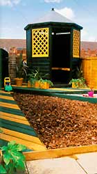 现在有很多新开发的多层或高层花园住宅都有屋顶阳台,因此,屋顶花园的打造就成了家居美化的重要部分,一般来说,50平米的屋顶花园很常见。在国外,屋顶花园是非常讲究的,多用轻质素材,设置草坪、花坛要尽量衬土薄一些,树木以可移动的盆栽为好。利用竹木矮栅、几块野山石造个坡形小草坪,再点缀些可移动的花草,将山野自然的情趣掬一捧浓缩进这钢筋水泥的世界之中,效果绝佳。 基于这样的原则,这个屋顶花园没有大量地使用绿植,而是通过木质走廊和凉亭来造景,同时也便于闲坐观景。地面运用了一定面积的仿真绿地,为了弥补自身景观上的不足,在上下对角的位置设计了一些仿真山石花木、活水鱼池等一些充满情趣的小品。 3、设计方案 L形庭院 这个设计最大的特点是易于打理,在视觉上简洁大气。 这个庭院视觉中心在于园子中的休闲区,灰色的圆形平台把大门与后院门流畅地连接在一起,搭配白色的铁艺桌椅,周边是比较稀疏的草地,让人感觉很开阔,好像比实际的面积要大得多,总体的风格是一种自然洗练的欧美风情。窗台下开辟出的一个弧形花池,种植低矮的各种花卉,推开窗子就可以看到花、闻到花的香气,同时,这里也是整个庭院的色彩中心。庭院四周是高低不同的灌木类植物,将开花与观叶植物参差种植,形成了这个庭院绚丽的围栏。 |