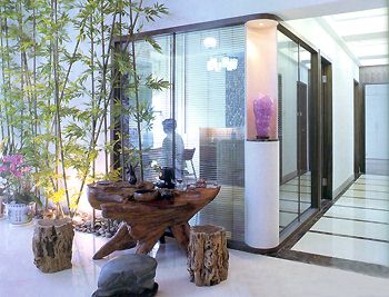 一进门口首先看到的是古典雕花屏风,给人以耳目一新的感觉。