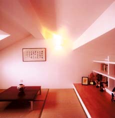虽说天阴,可李小姐家依然显得特别亮堂,尤其一楼,客厅和餐厅连在一起有四十来平方米,朝南是一排窗台很低的窗户和阳台落地门窗,加上从北面没有门扇的早餐室那里透过来的光照,家里显得十分明朗通透。主人对这种印象更加深刻,说是无论什么天气,家里的每个房间都显得很明亮。 李家是复式房,共有三层。 一楼有客厅、餐厅、早餐室、厨房、父母房、卫浴间。客厅和餐厅的顶面和大部分的墙面都是纯白色的,早餐室外有几块到顶的墙面刷着紫蓝色的乳胶漆,早餐室里面有道墙整个是明黄色的。餐客厅地坪铺着米黄色的复合地板,这米黄色延伸到阳台上,那里的地面铺着相似色彩的瓷砖,外沿则镶了一圈黑色的 地砖 。大概是与这黑色有个对应,或者与旁边的色块墙面有个呼应,楼梯口的地面铺着黑色的 大理石 ,楼梯的踏步一级级上去,也都是黑色的。 楼梯转上去的一堵墙一直到两楼,也被刷了颜色,是种略偏红的咖啡色。上两楼就是个家庭室,一左一右是李小姐的卧室和一间儿童房。卧室看上去非常的洁净,白色的橱柜、白色的墙顶,视觉焦点是大红色床单和枕头;这和家庭室有点相似,那里的大红色的粗纹布艺 沙发 很显眼。儿童房面积不大,也因为家里的小男孩比较好动,所以在一面刷成淡咖啡色的墙前,搭了一个一人高的床,床旁边还有一个小小的阁楼,是男孩的游戏天堂。 意想不到的是,那家庭室上面还有一个两面坡的和室,和室地面铺着榻榻米,上面就放着张矮桌,一边有层比桌面略低的地台,地台上有开放式的书架,靠楼道口有张比较宽大的玻璃台面,那是放电脑的。这和室又是主人的书房兼工作室。 据设计师刘伟讲,李小姐在日本呆过,希望自己的家里有一种日本式的明快、细腻。除了很有点日式味道的和室外,在其他楼层通过局部鲜亮的色块来表达明快的感觉。也因为李小姐家里的面积比较大,有260 平方米左右,局部的色块可以打破大面积白色的单调,同时又可在空间里形成虚实的变化。另外,在硬装修方面,又顺应了梁柱等原来建筑上的结构形态,在不同的空间做了一些块面的构成,加上色块,使家里显得既简洁明了,又富有变化。 在李家的各个楼面里,家具其实并不多,装饰品、摆件其实也很少,比如在餐厅的墙上就挂了一幅画,而且房子很大,但家里却不显得单调。这和硬体装修上有适量的点、线、面的构造很有关系。比如餐厅和客厅之间的宽梁上,就有三排方孔;与装饰柜对应的,在餐厅的挂画一侧墙面,做了一排三个方形的壁龛,起到一种装饰作用。设计师还做了些趣味构成,如进门玄关的照壁,一侧是斜的,蕴含“避邪”的意思;楼梯间的一面墙设计成一个很抽象的女性头部侧影,家庭室局部吊顶的边缘则是个抽象的男性面部侧影。 |