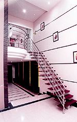 这是一套位于上海近郊的别墅。面积很大,开阔宽敞,空间划分也比较明朗,客厅、餐厅、活动室及厨房聚集成为活动区。三卧、三卫及一个书房营造出一个安静的休息区。同时,不同的活动区域都配有相应的阳台。整体上看,结构还是透着规整,简明的风格。偌大的会客厅相当宽敞。客厅原本没那么大,设计师在考虑到功能、美观及整体风格后,通过周密规划将二楼的平台打掉,将原一楼卫生间划入客厅,封管通过三阶梯并利用色彩的渐变来遮盖掉,与其下面的钢琴相呼应。厨房为L字形成布局,倚墙延展。