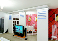 | 后现代主义设计原则强调功能的体现。在设计的效果图中,大胆地运用色彩,巧妙地以装饰元素表达寓意,营造出独特的装饰风格。