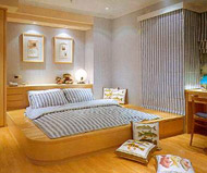随着舒适、随意装饰风格的兴起,地台式卧室也受到人们的欢迎。顾名思义,地台式卧室就是舍弃传统的卧床,代之以地台。地台是将居室中的局部地面抬高而形成的特定的功能区域。无论看电视、看书还是休息聊天,可以随意席地而坐,让人有一种回归自然的感觉。 地台的使用可以改善、美化室内效果,设置地台可以降低居室重心,增强居住者心理上的稳定感和安全感,有利于满足人们对于卧室的温馨、舒适、私密性较强的需求。它的随意性使人们有一个更为轻松自如的居住环境,它也以多样的造型、丰富的层次美化了室内空间,使其更显出过渡自然、高低错落的魅力。 |