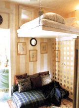 欧洲人对小空间的处理非常有经验,因为,他们非常重视家庭空间的每一寸土地。“欧罗巴”家具都来自意大利,其中适合小空间摆放的家具不少,特别是这种钢柱与木板结合的家具,完全根据你空间的大小随意处理。还有很熟悉的宜家家居。 但是,如何布置空间?小空间家具摆放是赢得空间的关键。在小空间里,床是家具中面积最大的,空间的利用率与床的安置关系重大。最好选择两级,一种方式在空中,一种方式是榻榻米,床垫席地而放,电视机也要随之放置得低一些,一是使用方便,二是视觉上不感觉到拥挤。江南裁纸的秘诀是:在人的眼睛水平线上,尽可能不要有打眼的家具,储藏柜最好是设计在高处,里面的东西不常用,不会给人增加太多的麻烦。